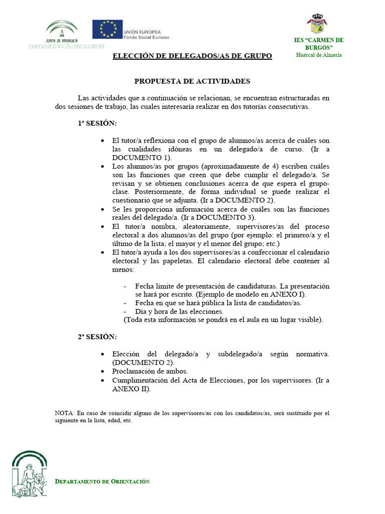 ELECCIÓN DE DELEGADOS/AS DE GRUPO Huércal de Almería