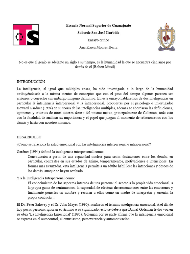 erróneos o correctos sin embargo ninguno definitivo. En este ensayo hablaremos de dos inteligencias en