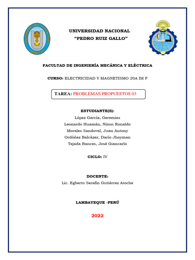 CURSO: ELECTRICIDAD Y MAGNETISMO 20A IM F