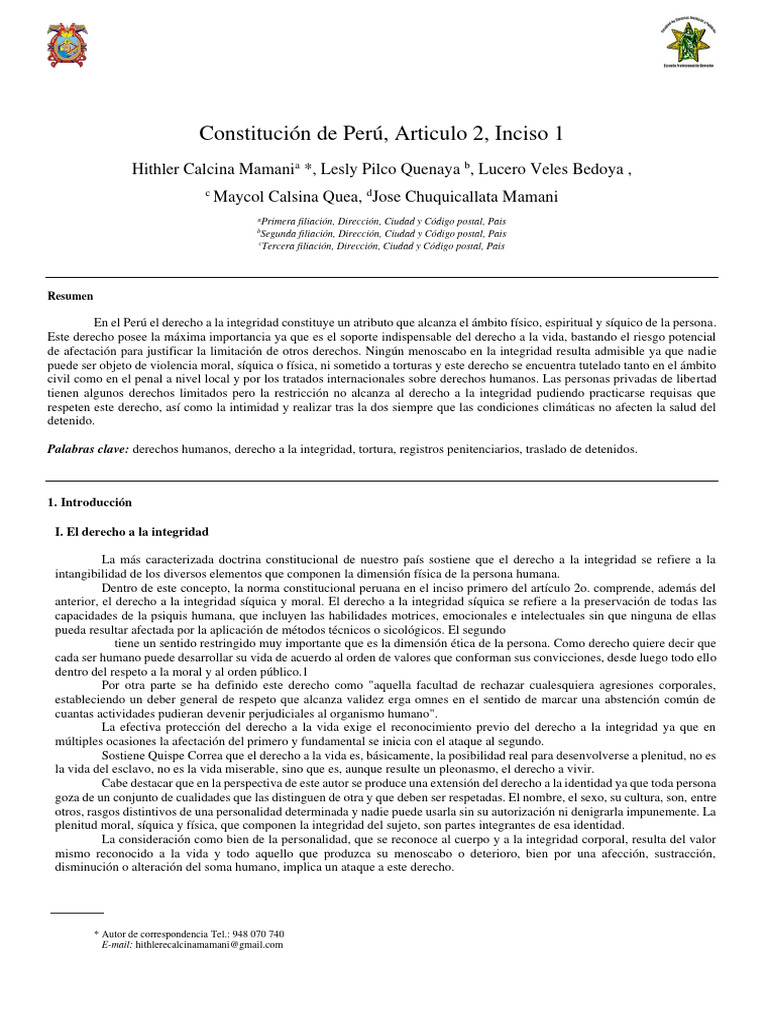 Hithler Calcina Mamania *, Lesly Pilco Quenaya b, Lucero Veles Bedoya ,