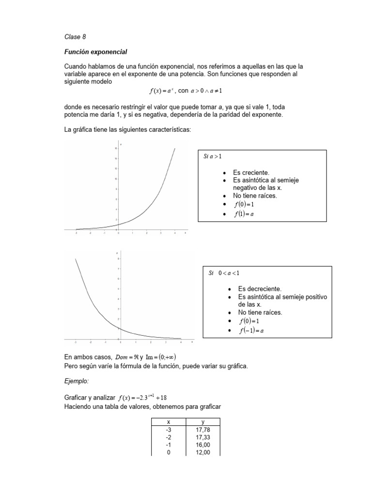 variable aparece en el exponente de una potencia. Son funciones que responden al