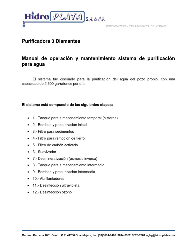 Manual de operación y mantenimiento sistema de purificación