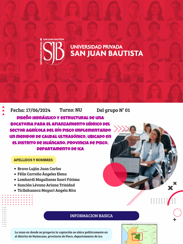La ubicación de la bocatoma se realizó considerando las cotas del río Pisco, pendientes y la forma del