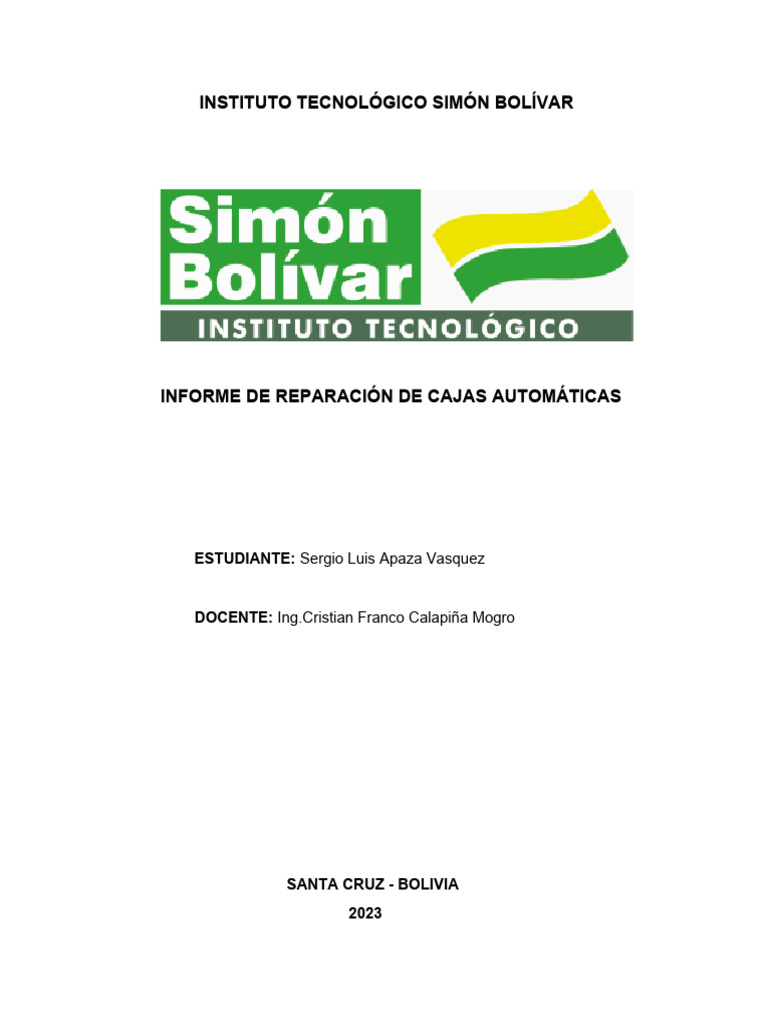 INFORME DE REPARACIÓN DE CAJAS AUTOMÁTICAS