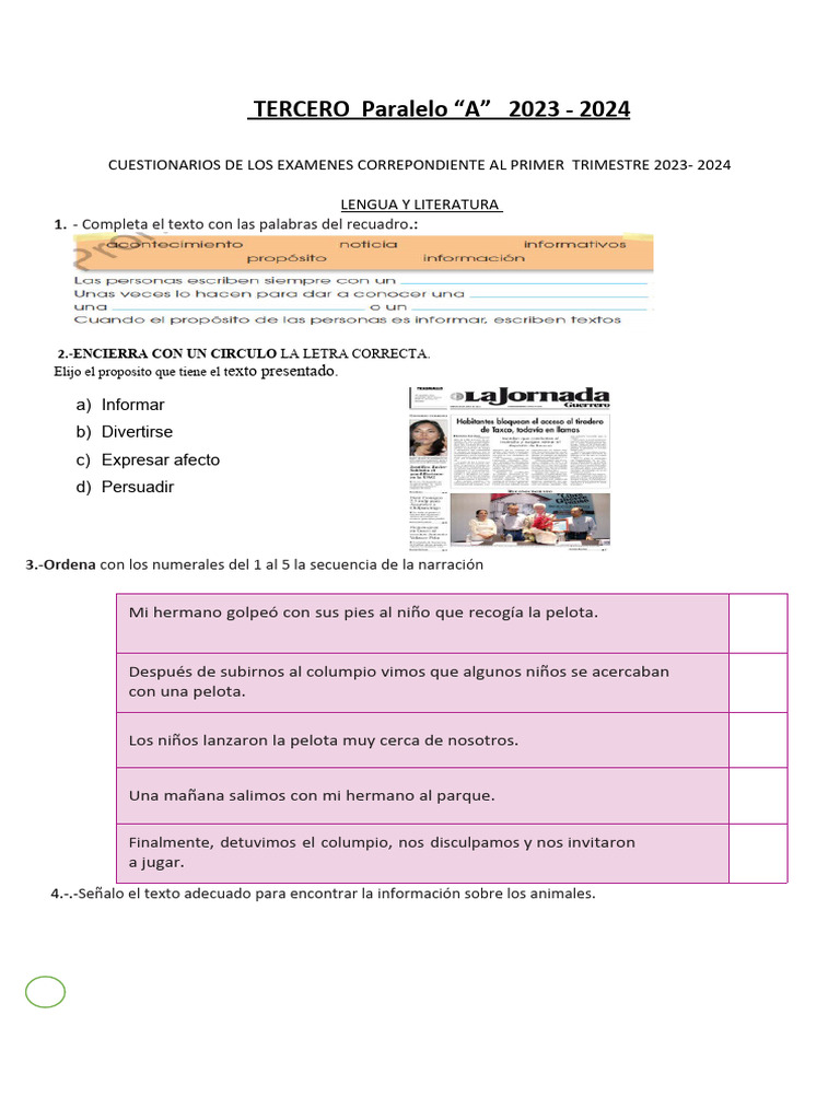 CUESTIONARIOS DE LOS EXAMENES CORREPONDIENTE AL PRIMER TRIMESTRE 2023 - 2024