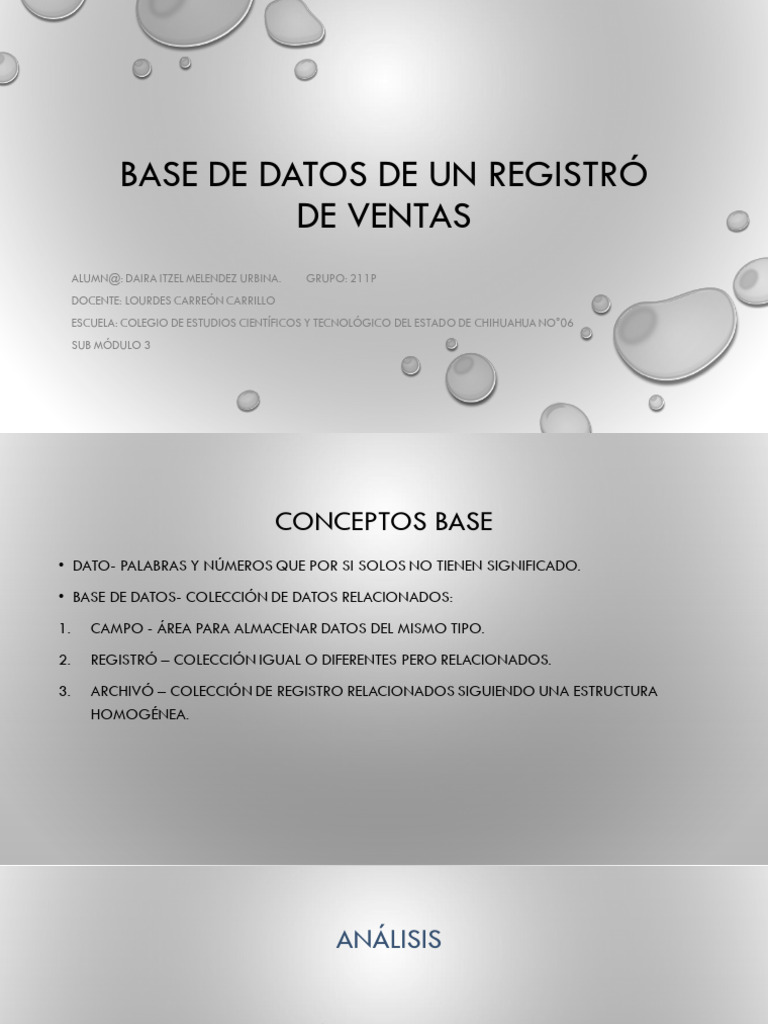 UNA BASE DE DATOS NOS AYUDA A MANTENER UN REGISTRÓ DE DATOS ORDENADOS EN UN MISMO SITIO,
