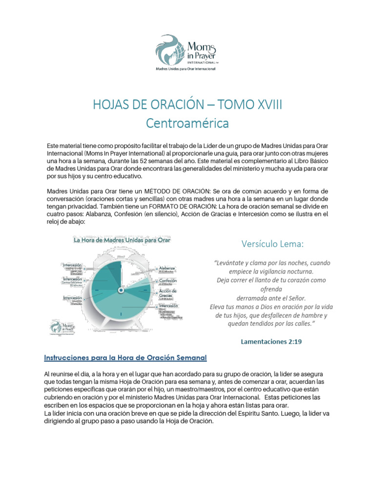 Internacional (Moms In Prayer International) al proporcionarle una guía, para orar junto con otras mujeres