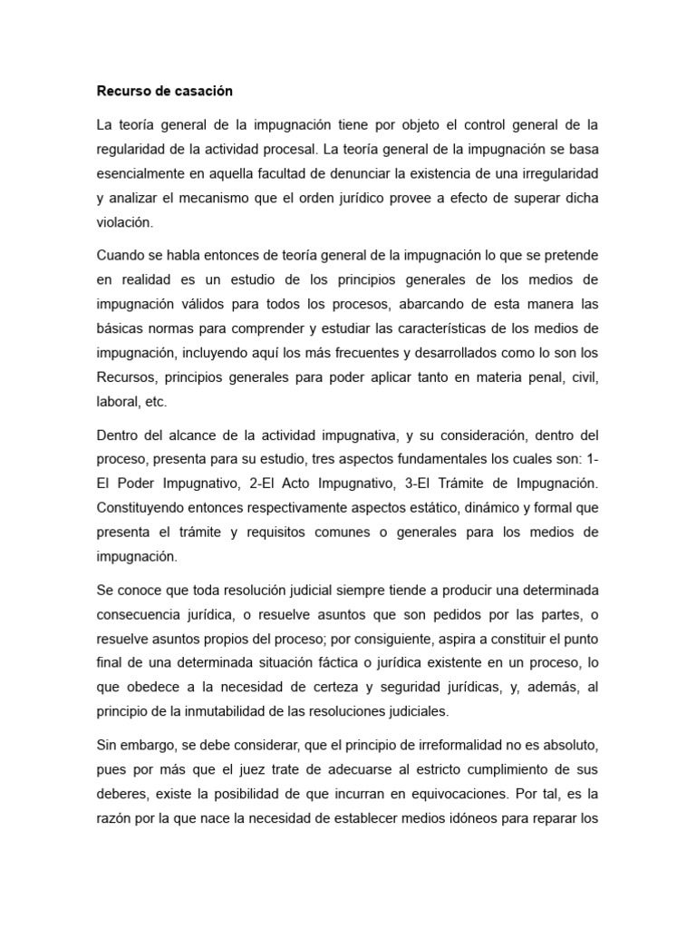 de casación, el cual es un proceso de impugnación de una resolución judicial, ante