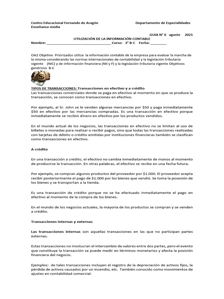 TIPOS DE TRANSACCIONES: Transacciones en efectivo y a crédito