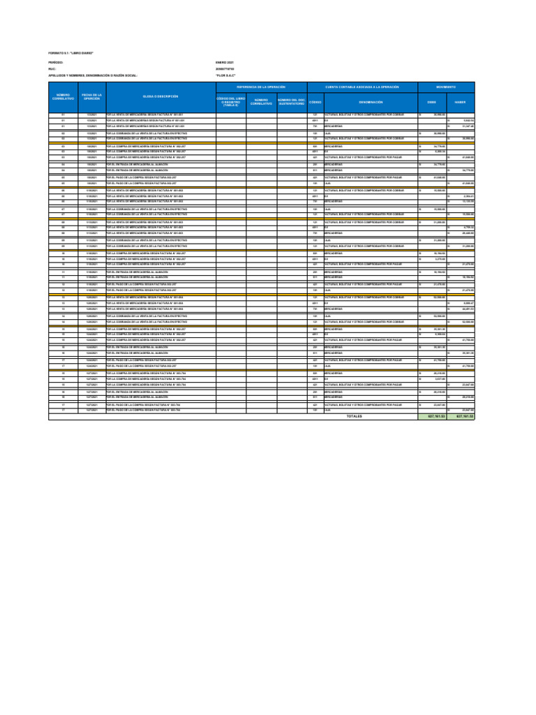 01 1/3/2021 POR LA VENTA DE MERCADERÍAS SEGÚN FACTURA N° 001-001 701 MERCADERÍAS S/ 31,347.46