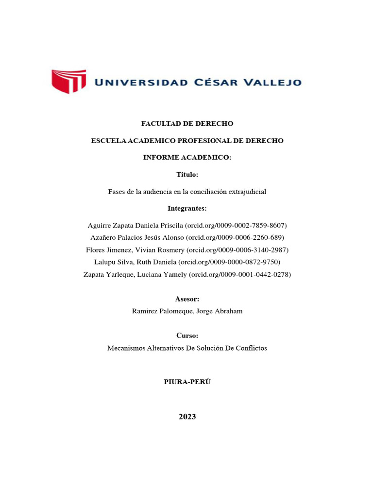 En el presente informe se centran las diferentes fases de la audiencia en el proceso de conciliación