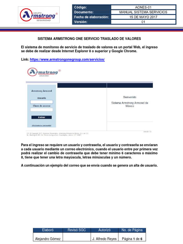 SISTEMA ARMSTRONG ONE SERVICIO TRASLADO DE VALORES