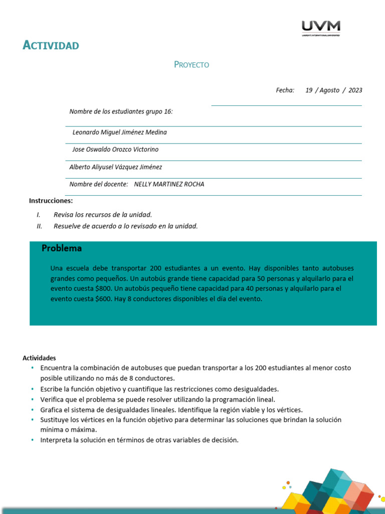 • Encuentra la combinación de autobuses que puedan transportar a los 200 estudiantes al menor costo