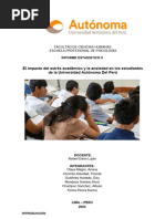 expectativas académicas y sociales, entre otros factores. Por otro lado, la ansiedad