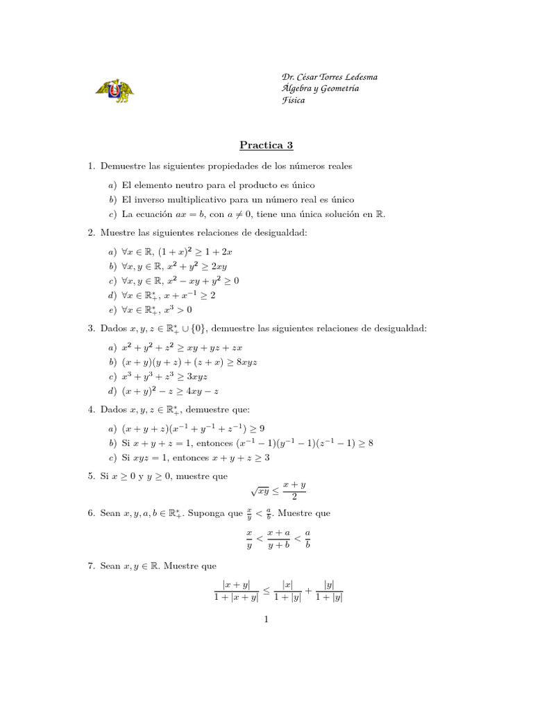 1. Demuestre las siguientes propiedades de los números reales