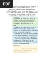 – El andamio no debe de interferir con alarmas, cajas de instalación eléctricas o hidrantes.,