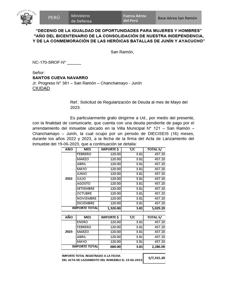 Ref.: Solicitud de Regularización de Deuda al mes de Mayo del