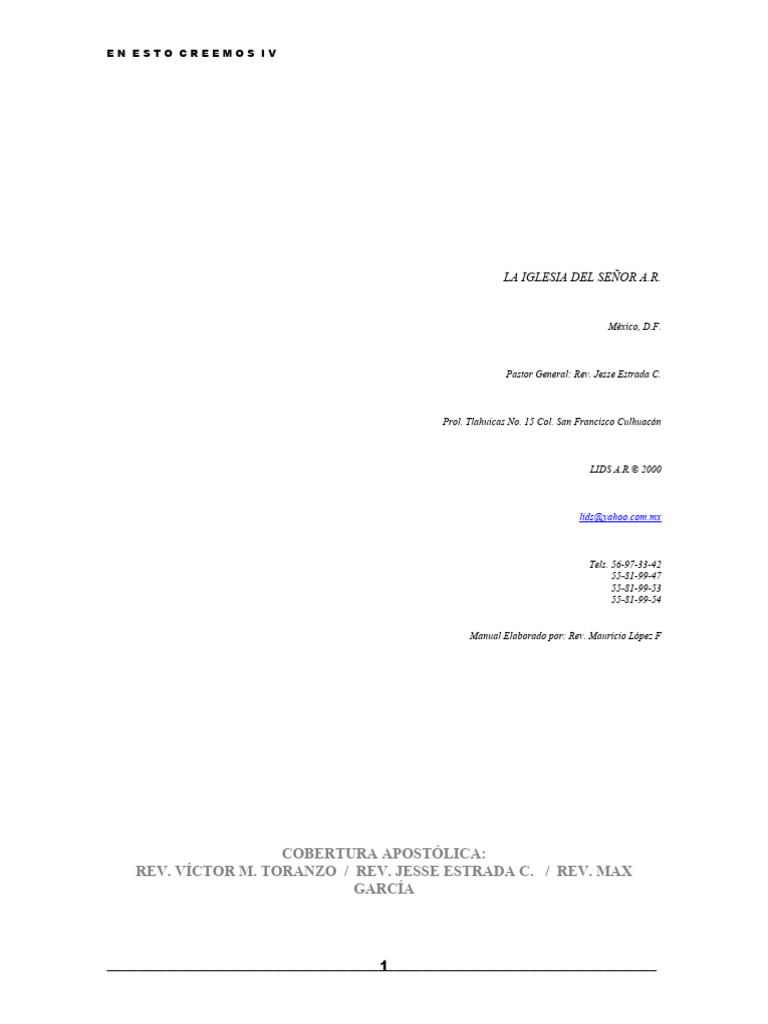 del Señor” creemos. Este manual es una amplificación del folleto denominado “En esto