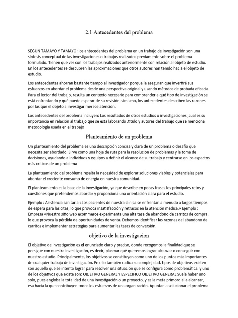 SEGUN TAMAYO Y TAMAYO: los antecedentes del problema en un trabajo de investigación son una