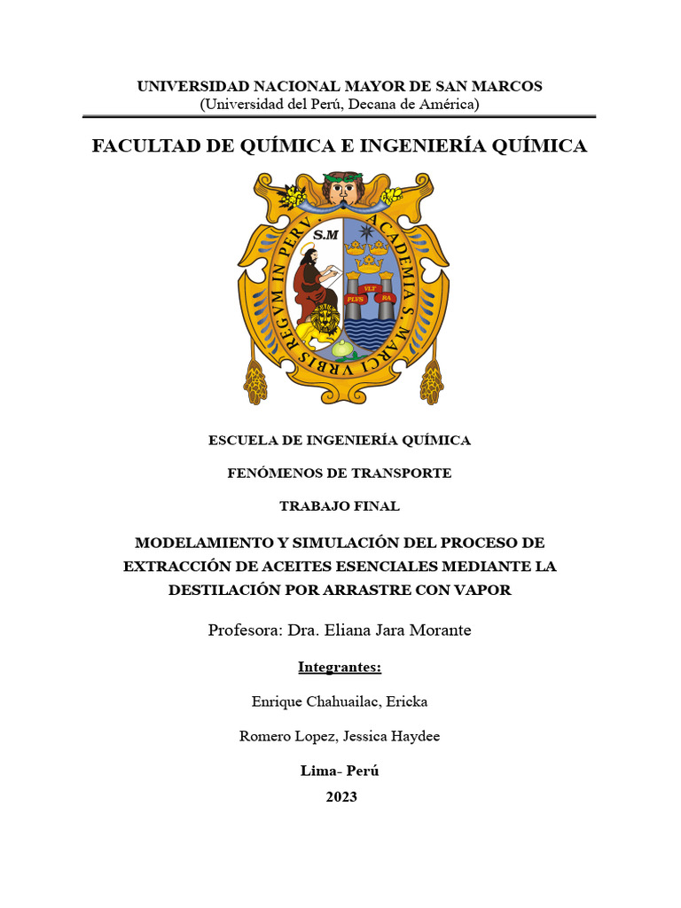 Modelado de Extracción de Aceites Esenciales