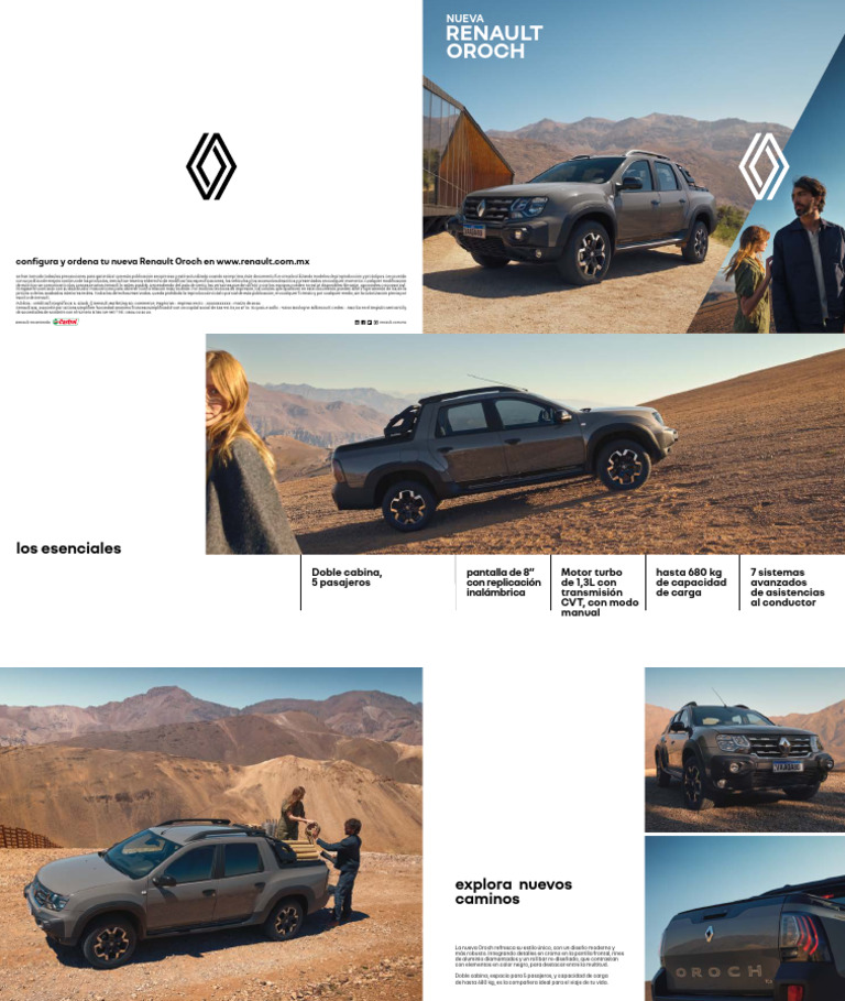 • Espejos exteriores al color de • Descansabrazos delantero • 4 bocinas • Computadora de viaje • Alarma perimétrica • Barras de techo Outsider • Encendido automático de digitales • Embellecedor frontal con