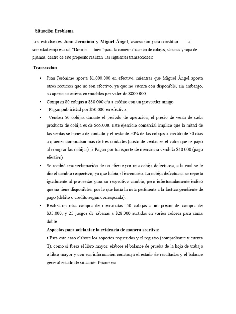 sociedad empresarial “Dormir bien” para la comercialización de cobijas, sábanas y ropa de