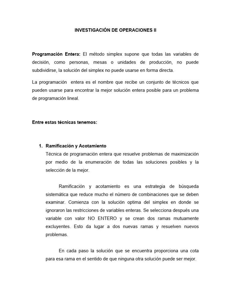 subdividirse, la solución del simplex no puede usarse en forma directa.