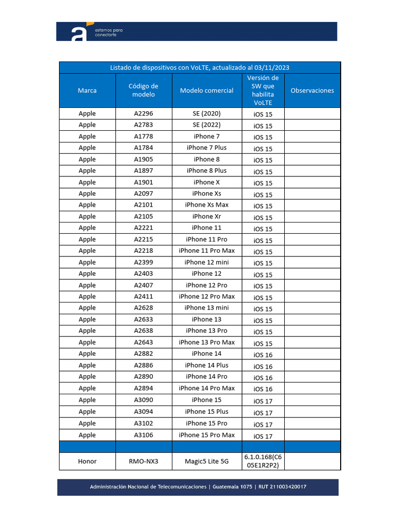 Listado de dispositivos con VoLTE, actualizado al 03/11/2023