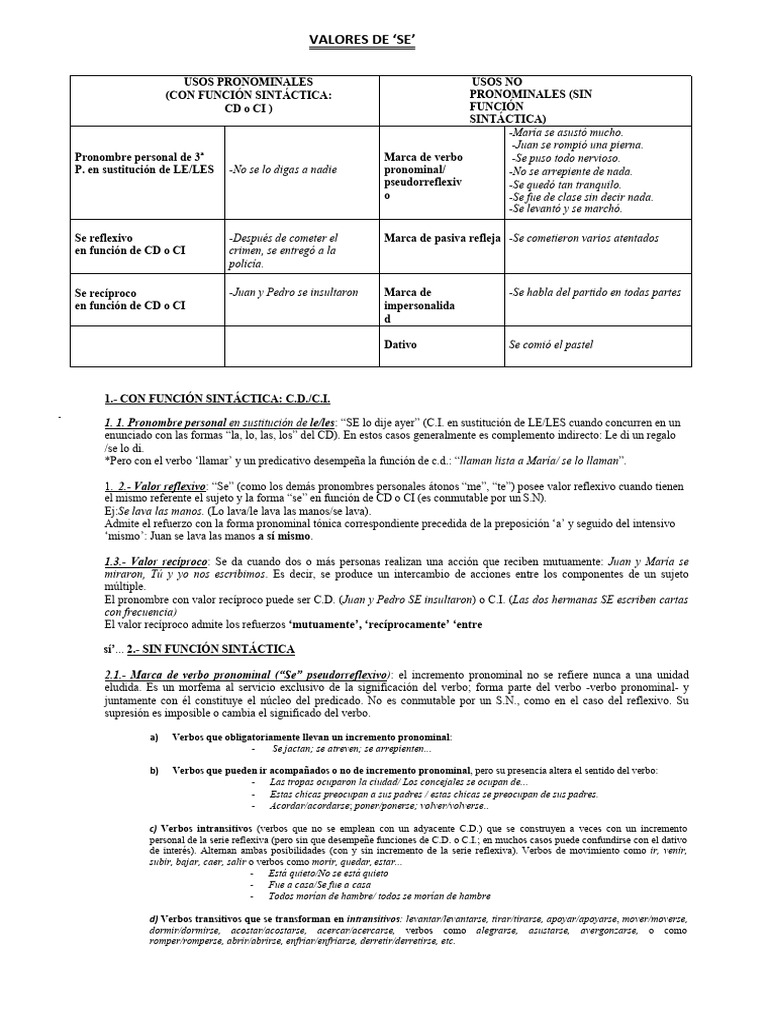 1. 2.- Valor reflexivo: “Se” (como los demás pronombres personales átonos “me”, “te”) posee valor reflexivo cuando tienen