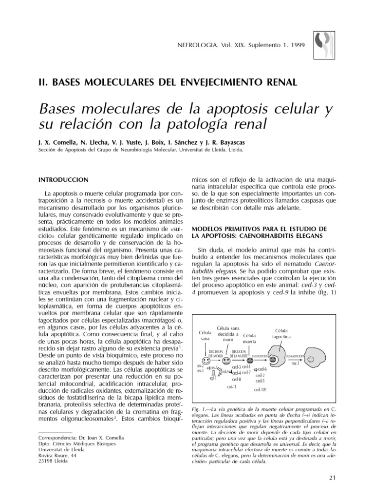 «caspasas inductoras» y «caspasas ejecutoras». Las proceso apoptótico (Revisado por Reed, 1997) 17. El ci-