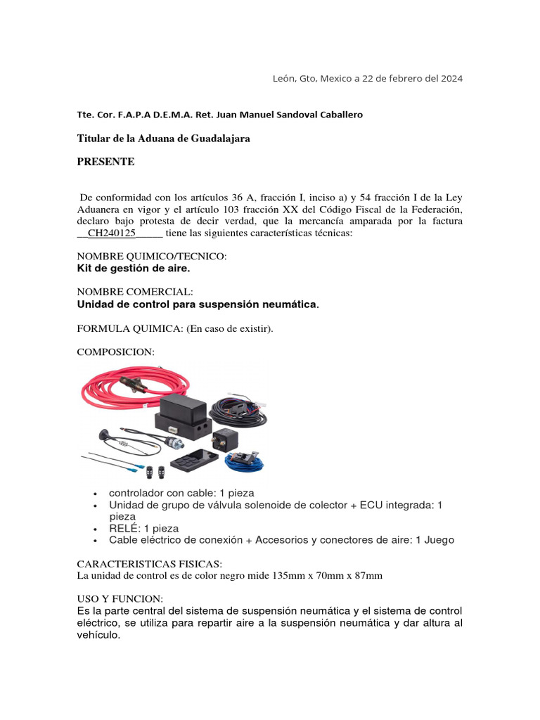 eléctrico, se utiliza para repartir aire a la suspensión neumática y dar altura al