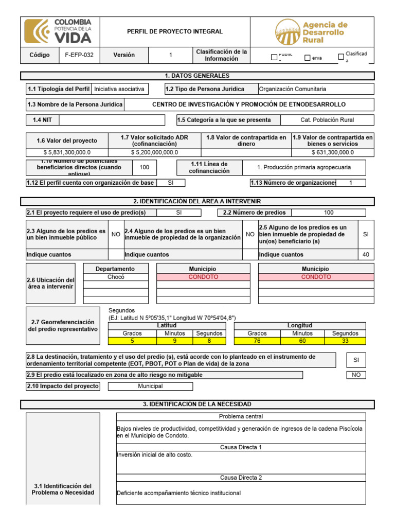 Mejorar la productividad del municipio de Condoto mediante la producción de 80.000 kilogramos anuales entre