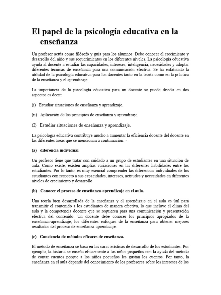 La importancia de la psicología educativa para un docente se puede dividir en dos