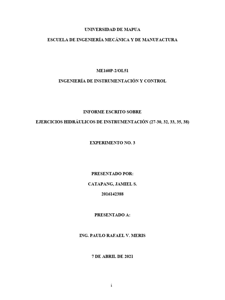 hidráulica. En consecuencia, los estudiantes concluyen que el experimento se llevó a cabo con