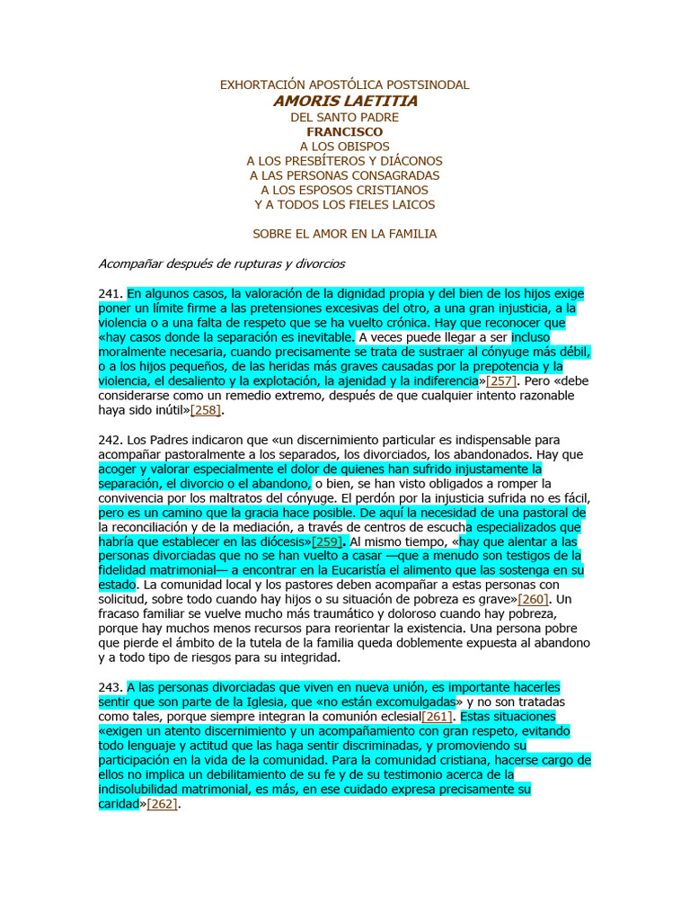 245. Los Padres sinodales también han destacado «las consecuencias de la separación