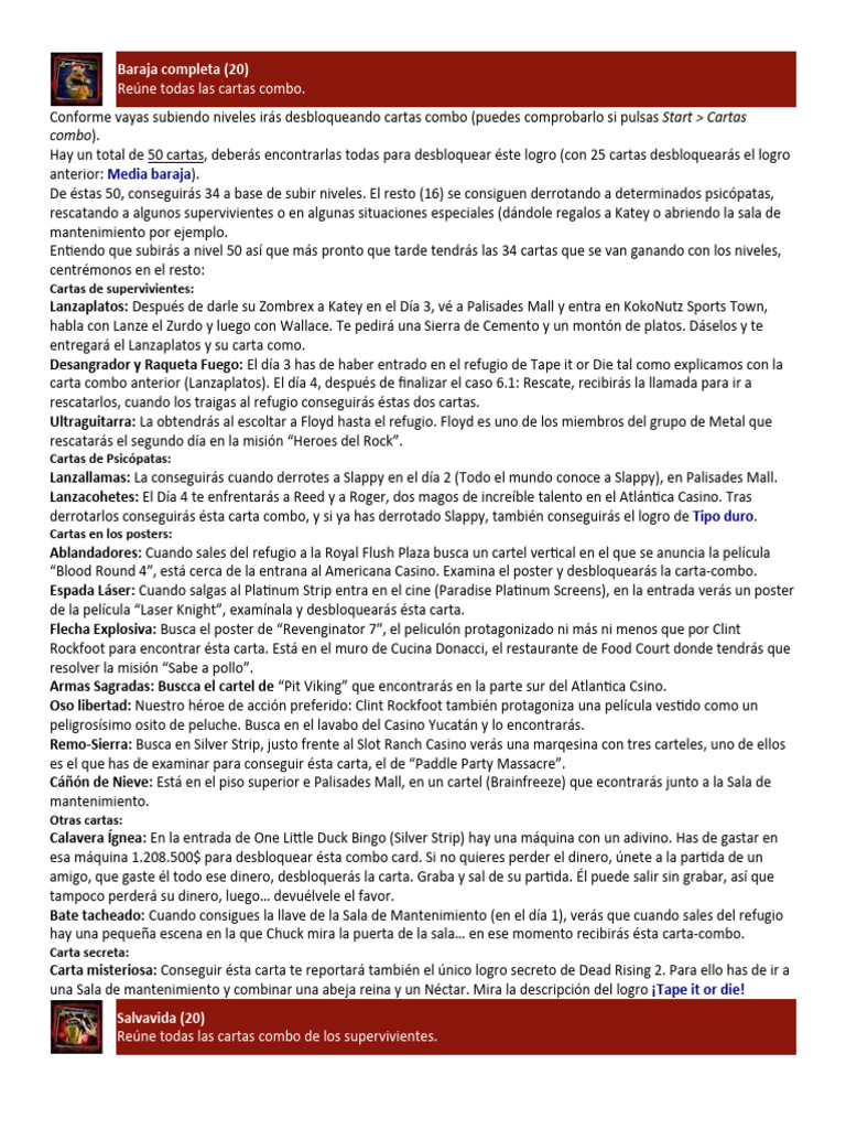 Carta misteriosa: Conseguir ésta carta te reportará también el único logro secreto de Dead Rising 2. Para ello has de ir a