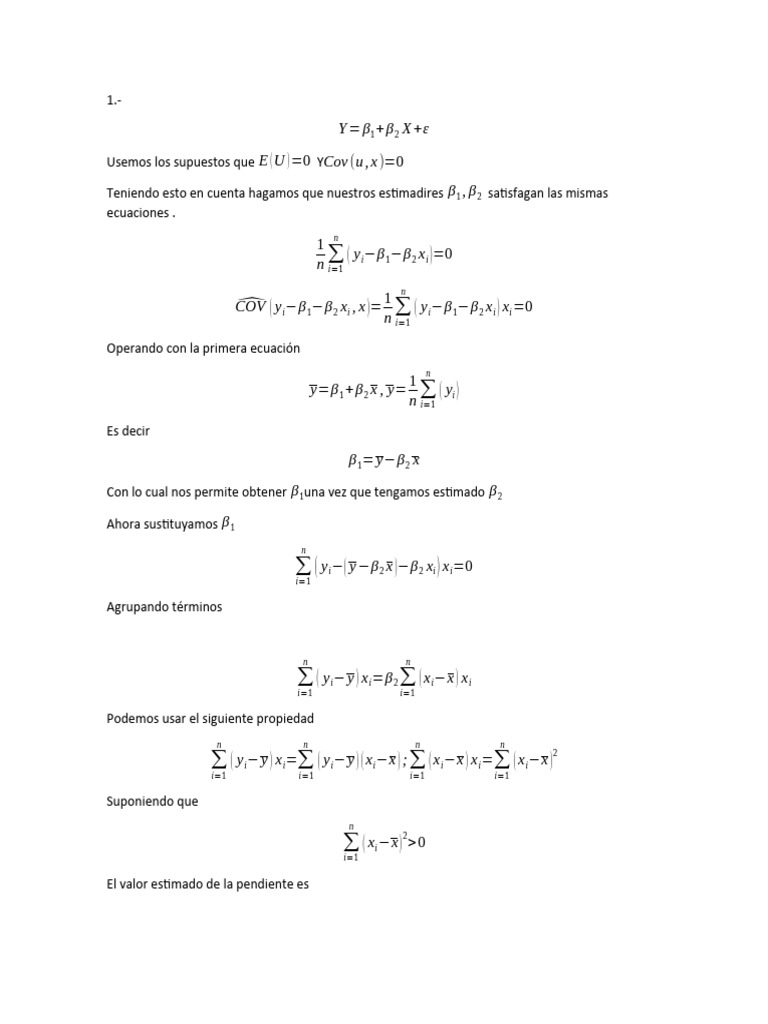 Con lo cual nos permite obtener β 1una vez que tengamos estimado β 2