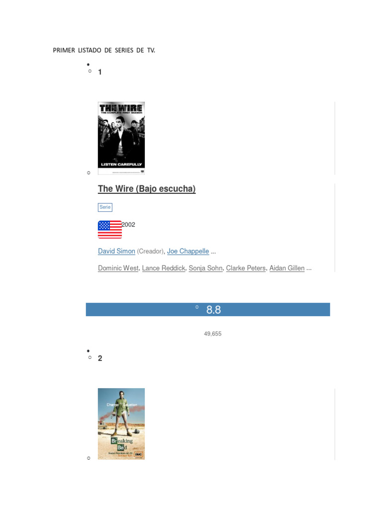 Primer Listado de Series de TV