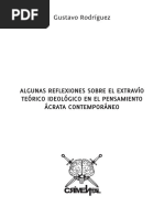 captulos previos se encargan de demostrar. En efecto, una de las convicciones que anima estas pginas es que el despertar no puede ser ms que un perodo relativamente breve y que las exigencias que lo suceden no pueden ser resueltas apelando apenas a una bulliciosa constatacin. Antes que eso, lo que el movimiento anarquista tiene planteado es una redenicin actualizada de sus trazos; y, como acaba de sostenerse, no para deformarlos en una versin mediatizada e irreconocible sino para que los mismos adquieran su inevitable carta de ciudadana en la historicidad que nos atraviesa de cabo a rabo. Lo que este texto se propone, entonces, es un replanteo general de aquellas pautas que podran informar un proyecto revolucionario de trabajo en el espacio latinoamericano, procurando abarcar, as sea con la brevedad del caso, sus notas fundamentales. Al mismo tiempo, el texto puede ser entendido tambin como un resumen de hecho de aquellos rasgos que el movimiento anarquista ya presenta de por s y sin que los mismos adquieran el carcter de un programa de cumplimiento imperativo. En ese sentido, los puntos all sealados pueden constituir una agenda de dilogos y reexiones al interior de la variopinta constelacin de agrupaciones que compone el movimiento anarquista de nuestros das. Estas pginas contienen, entonces, el relato de despertares y alborozos pero quieren ser tambin un llamado de atencin sobre su probable agotamiento sin consecuencias; tal como se planteara ya ms de una vez, lastimosamente, en nuestra largamente centenaria peripecia. Despertares, s; pero no como un augurio triunfalista de cumplimiento lineal e inexorable, no como un pronstico feliz y esperanzado sino en tanto acontecimiento que se revuelve en una historicidad concreta y que slo puede ser entendido como un campo renovado de oportunidades y desafos y nada ms que como tal. Siendo as, no cabe actitud ms razonable para este trabajo que sealar tambin, con el nfasis del caso, aquel conjunto de limitaciones que obstaculizan el desarrollo presente del movimiento anarquista y sobre las cuales, inevitablemente, habr que operar con la enjundia necesaria. Ya hicimos referencia a lo que, desde nuestro punto de vista, constituye un requisito esencial: la recreacin de un paradigma revolucionario remozado y en condiciones de apropiarse por Los sediciosos despertares de la anarqua / 13