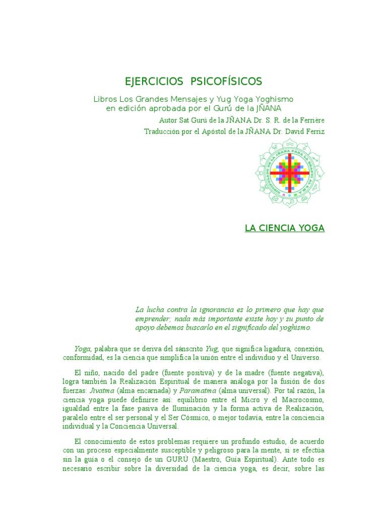 Libros Los Grandes Mensajes y Yug Yoga Yoghismo en edicin aprobada por el Gur de la JANA Autor Sat Gur de la JANA Dr. S. R. de la Ferrire Traduccin por el Apstol de la JANA Dr. David Ferriz