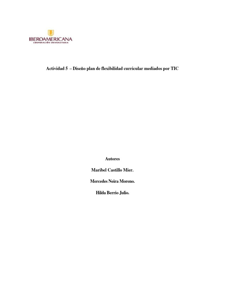 Actividad 5 – Diseño plan de flexibilidad curricular mediados por TIC