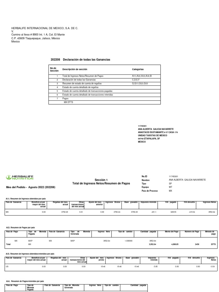 País de Pago Tipo de Moneda Pais de Ganancia Tipo de Moneda Ingreso Neto Tipo de cambio Cantidad pagada Monto del Pago Número de Pago Método de