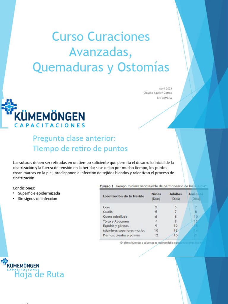 cicatrización y la fuerza de tensión en la herida; si se dejan por mucho tiempo, los puntos