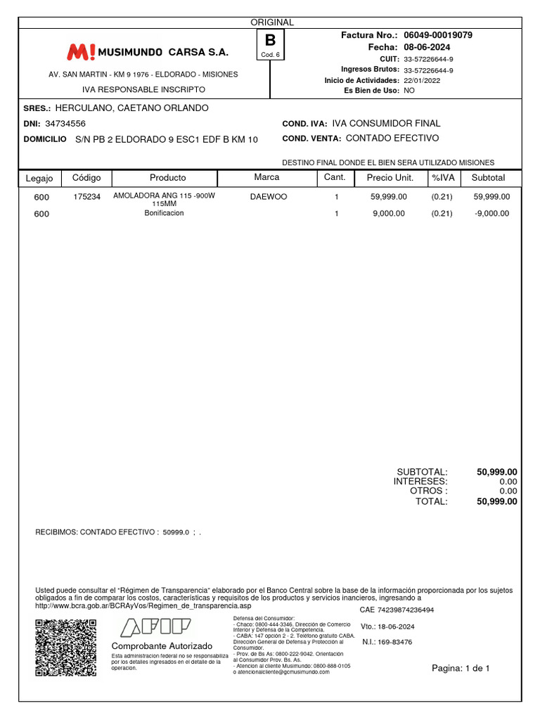 Factura Nro.: 06049-00019079