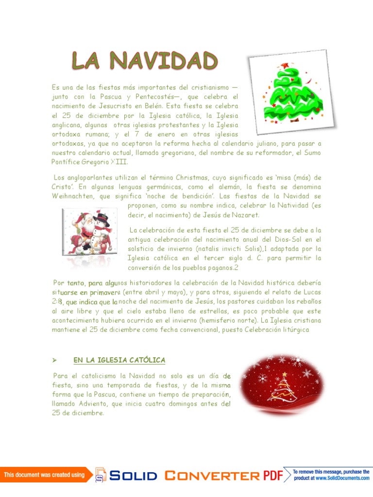 La Navidad es la fiesta cristiana ms popularizada, pese a que la Iglesia considera que es ms importante la Pascua. Y por tal motivo es la que contiene ms