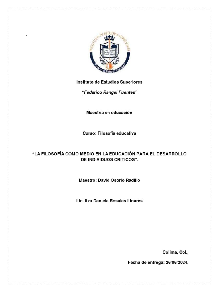 abordados en el curso “Filosofía educativa”, poniendo en práctica las habilidades de