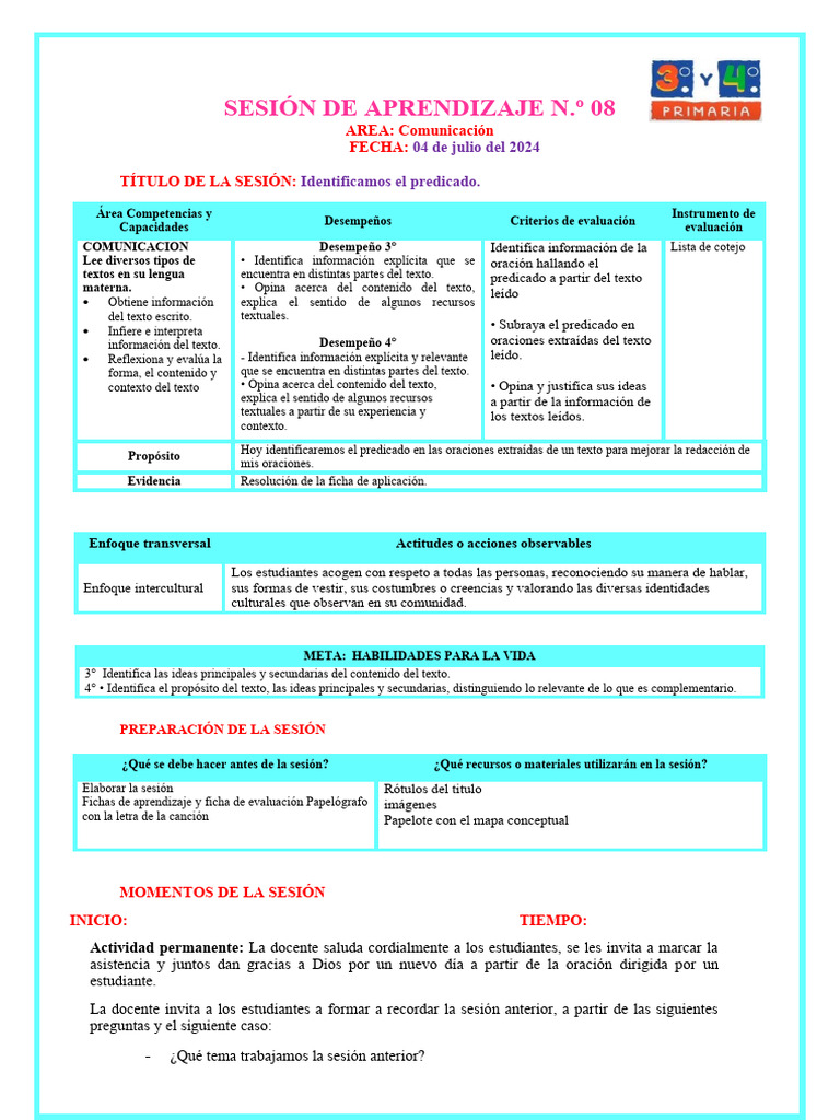 TÍTULO DE LA SESIÓN: Identificamos el predicado.