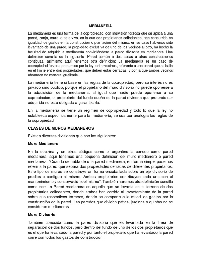 medianera, aquí tenemos una pequeña definición del muro medianero o pared