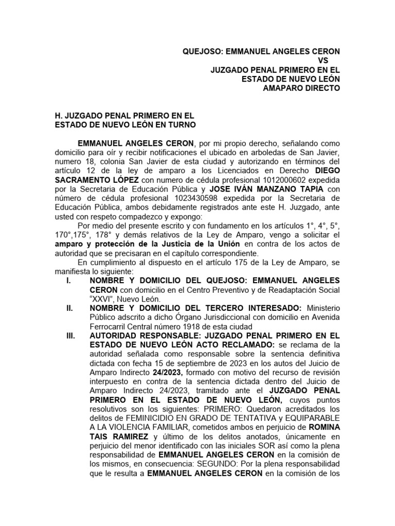 QUEJOSO: EMMANUEL ANGELES CERON