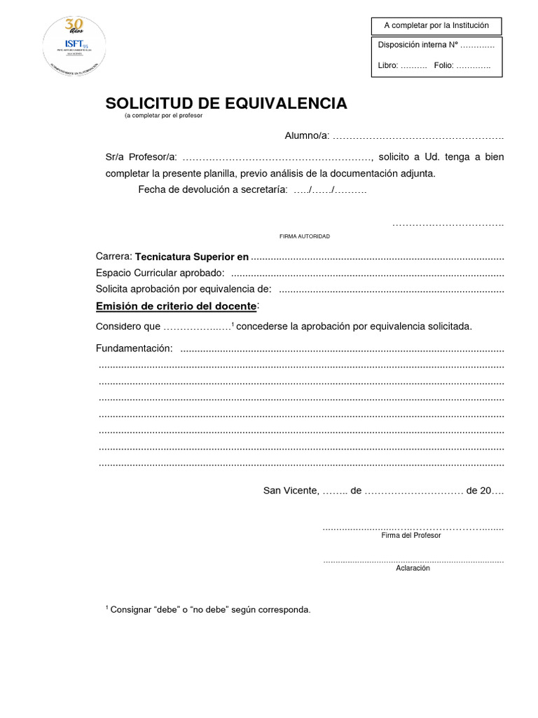 Considero que ……………..….1 concederse la aprobación por equivalencia solicitada.